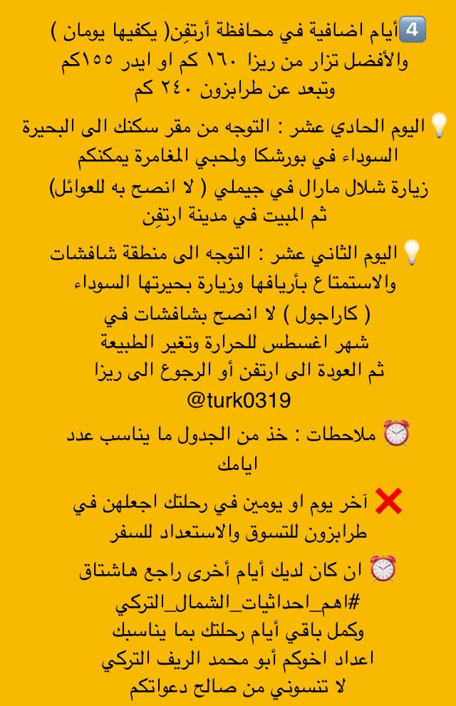 الريف التركي No Twitter جدول تفصيلي لزيارة الشمال التركي طرابزون ريزا غيرسون اوردو ارتف ن من ١٢ يوم من غير أيام التسوق اختر الأيام التي تناسب مدة